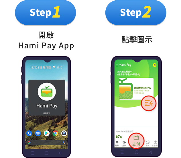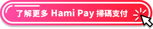 - Hami Point 1點=1元,可於Hami Pay掃碼支付時折抵消費,也可至Hami Point票券館(原Hami小舖)兌換四大超商、百貨、家樂福...等超過150家熱門電子票券。相關點數請至Hami Pay>「首頁」查詢及兌換商品。