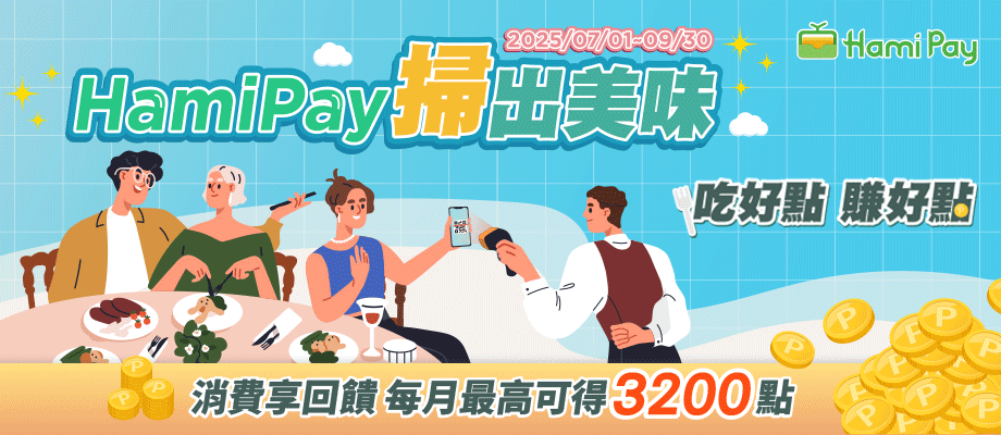 ★2025/7/1-9/30活動期間,用Hami Pay掃碼支付滿額享隨機回饋!精選餐飲商家及中華電信實體門市再享加碼10%回饋!